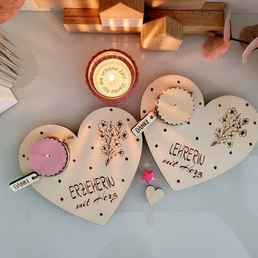 Hier siehst Du eine Vielfalt an Herzstücken, die bereits entstanden sind, vielleicht ist ja Deins auch bald dabei. Deckel, Brettchen, Kerzen, Tschen & Deko... es ist wie immer vieles möglich... Zum Abschied oder vielleicht zu Weihmachten, Ostern oder zum Geburtstag, als gemeinsames Geschenk der Kita oder Schulgruppe an Deine Erzieher/Lehrer...?!?