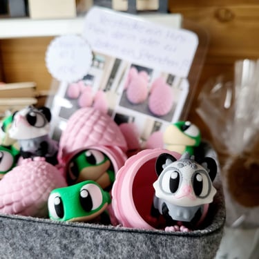 Katzen, Eisbären, Dinos, Waschbären, Hühner, Schweinchen, Frösche... nach und nach ziehen sie in die Galerie.